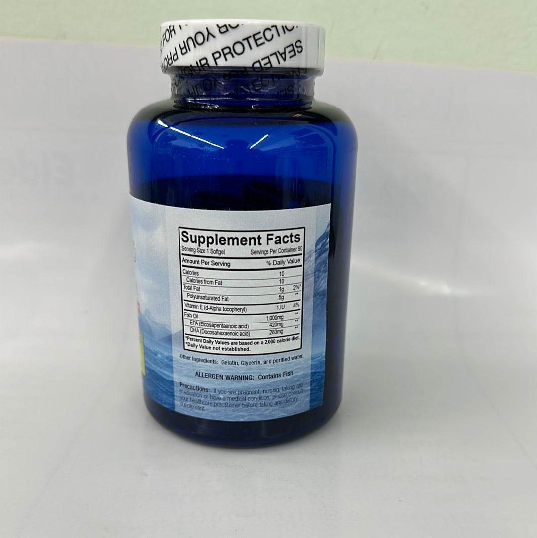 WHAT’S INSIDE: 90 soft gel capsules filled with EPA and DHA omega- 3 fatty acids.